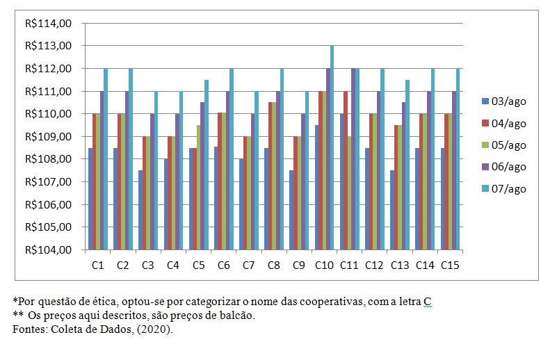 E os bons resultados vistos nessa primeira semana de Agosto de 2020, podem ficar mais elevados ou sofrer uma queda. O Gráfico 01, faz menção as principais oscilações do preço pago pela saca de soja, junto às cerealistas da região. Podemos observar que saímos do R$ 107,50 e chegamos as R$113,00.