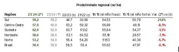 “Desde setembro, essa região tem enfrentado anomalias significativas nas chuvas e temperaturas, especialmente nos estados de Mato Grosso e Goiás. Vale ressaltar que nossa primeira projeção já incorporava uma baixa produtividade em todas as regiões brasileiras devido ao El Niño, com exceção do Sul, e essa situação se agravou devido aos eventos climáticos recentes”, comenta Felipe Jordy, coordenador de inteligência e consultoria da Biond Agro.