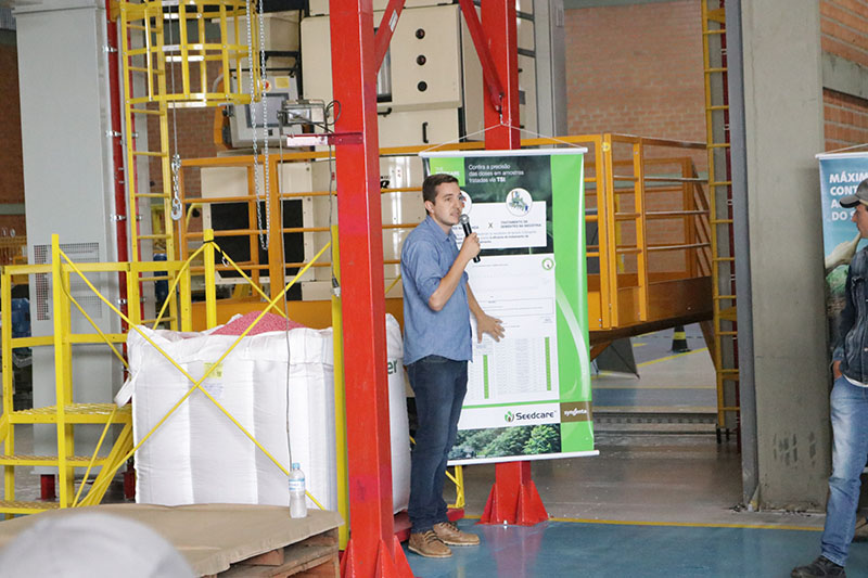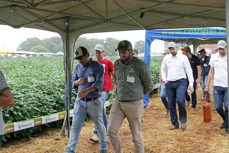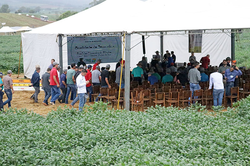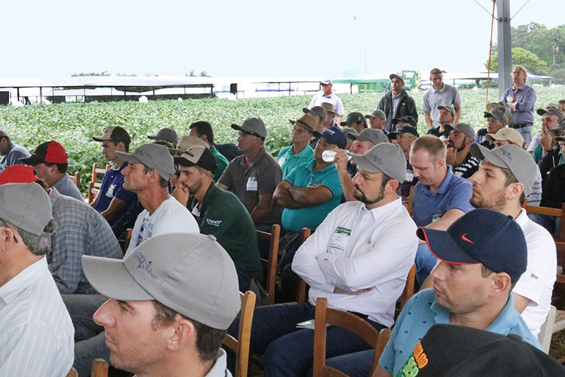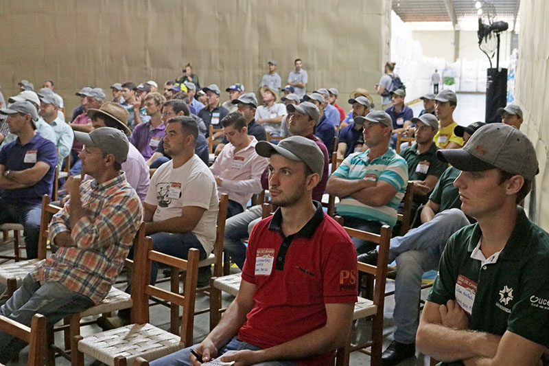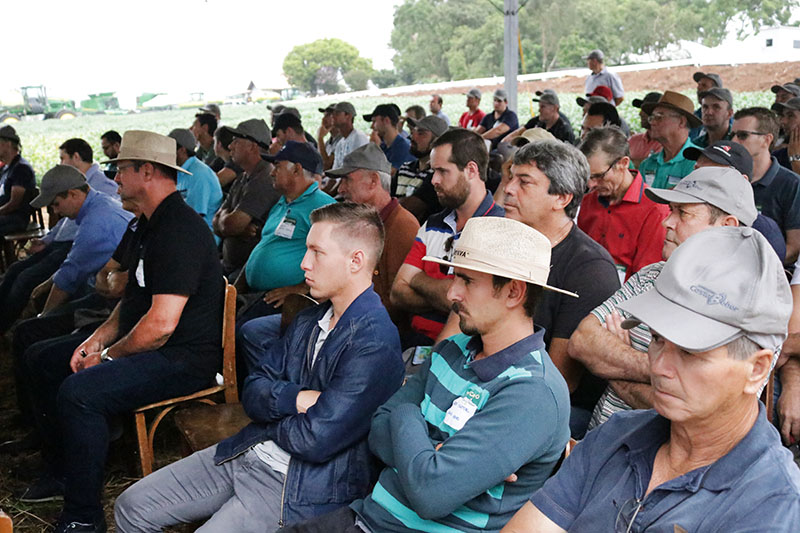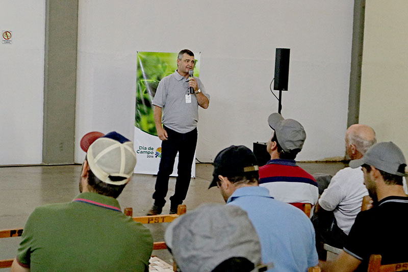 O tour no campo começou em um bate-papo na primeira estação com os engenheiros agrônomos Tanise Costa Beber e Leandro de Oliveira. A próxima parada teve como destaque a palestra com o Engenheiro Agrônomo Dr. Marcelo Madalosso.